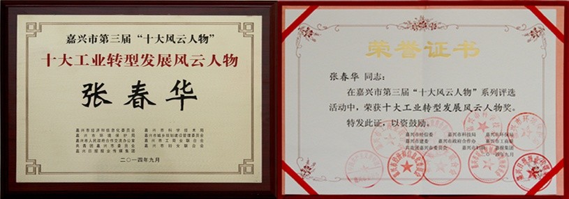 Through the recent selection of the “Top Ten People” series held by Jiaxing City, Zhang Chunhua, the chairman of the company, was selected as one of the top ten industrial transformation and development figures.